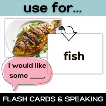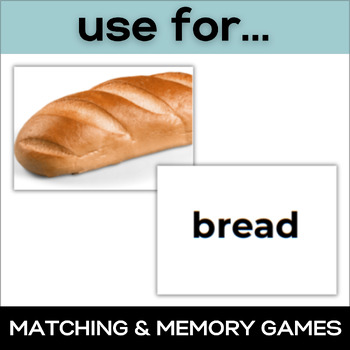 Get vocabulary that builds fluency and allows students to speak about food in various contexts. The 50 vocabulary words are: apple, orange, banana, plum, watermelon, peach, pear, kiwi, strawberry, cherry, tomato, potato, carrot, onion, zucchini, cucumber, pepper, celery, broccoli, cauliflower, hamburger, French fries, sandwich, chips, salad, soup, pizza, hotdog, chicken, egg, rice, pasta, flour, bread, cheese, butter, water, milk, coffee, tea, salt, black pepper, honey, oil, chocolate, peanut butter, fish, meat, ice cream, cake